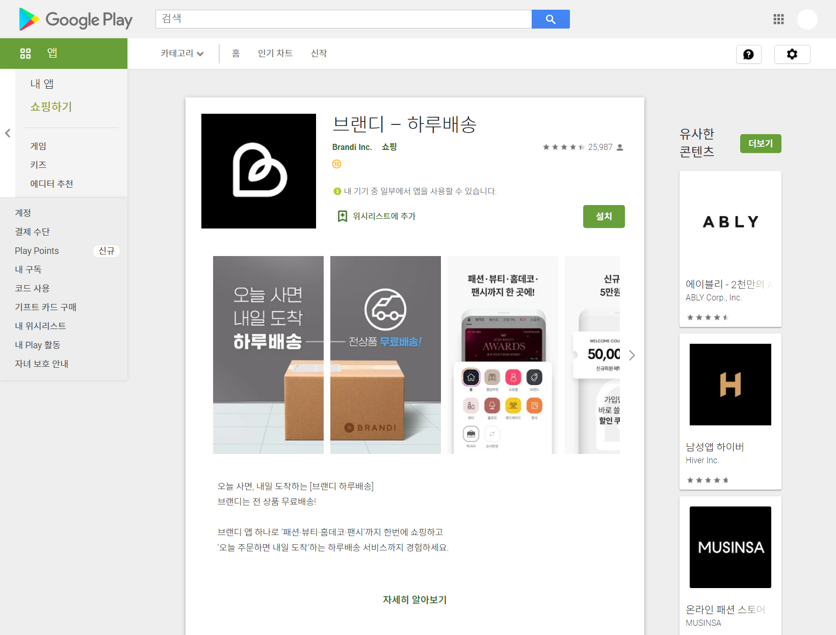 브랜디(Brandi), 오늘 주문하면 내일 도착 하루배송