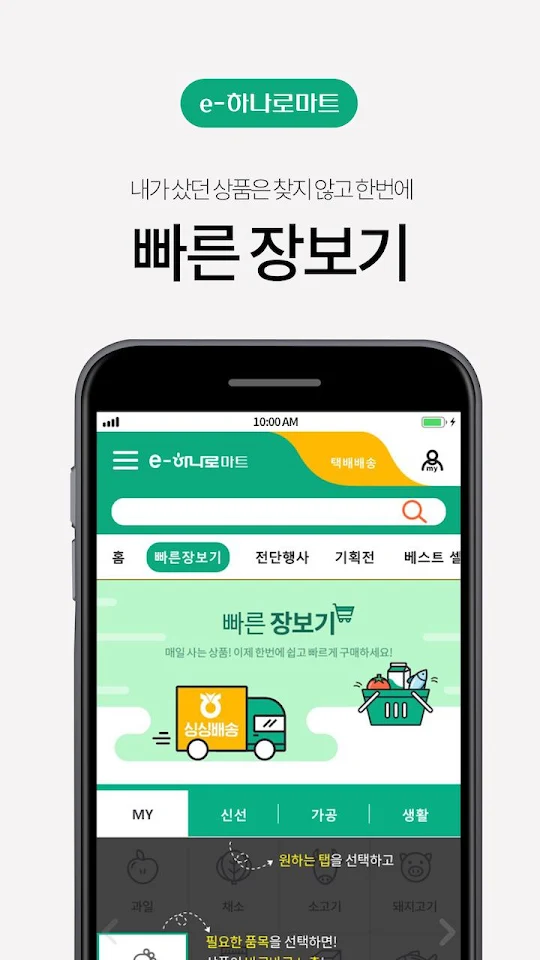 우리 가족이 먹는 농산물 신선하고 믿음직하고 만족스럽게, 내가 삿던 상품은 찾지않고 한번에 빠른 장보기가 가능합니다.