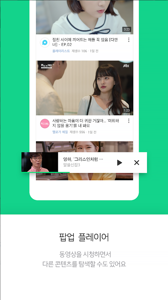 - 팝업 플레이어 : 영상을 시청하면서 콘텐츠를 자유롭게 탐색할 수 있습니다.