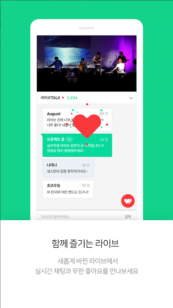 새롭게 바뀐 라이브에서 실시간 채팅과 무한 좋아요를 만나보세요.