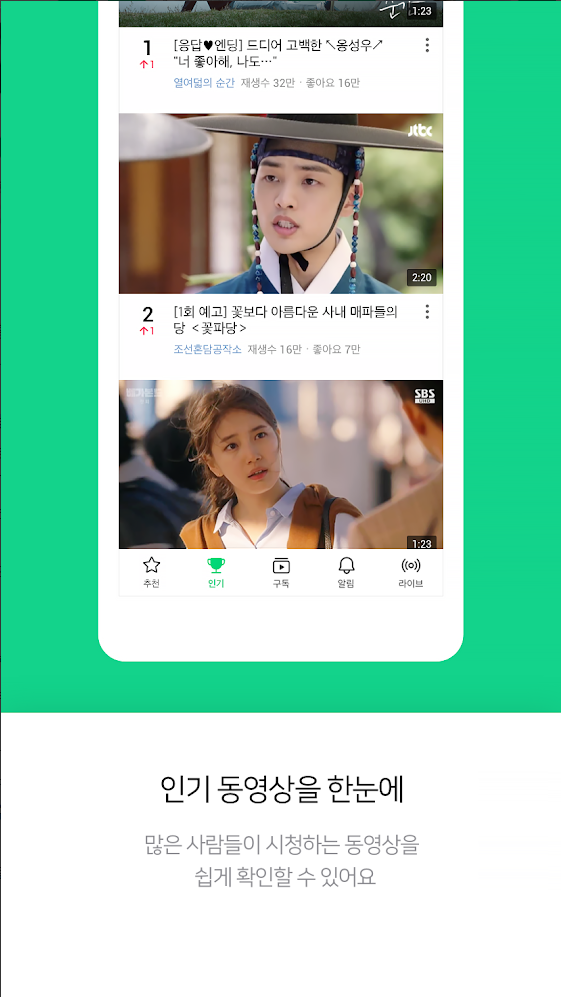 - 인기 : 네이버 TV의 인기영상을 확인할 수 있습니다.