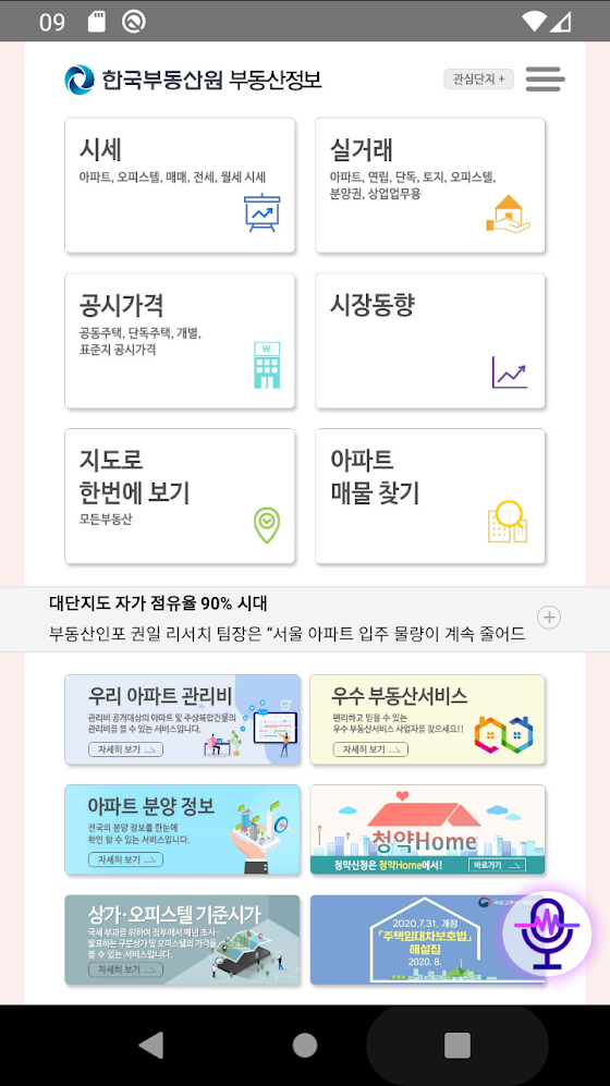 한국부동산원에서 제공하는 부동산 시장 정보를 하나의 앱으로 조회 가능!!