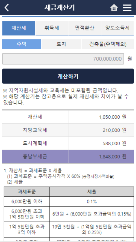 대출상품, 부동산 세금계산기에 대한 정보를 조회할 수 있습니다.