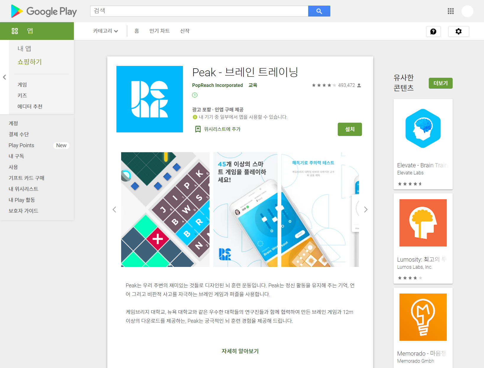 Peak - 브레인 트레이닝 - Google Play 앱