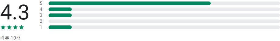 앱 평점 및 별표 1, 2, 3, 4, 5개 리뷰의 개수에 따라 표시되는 막대그래프는 앱의 평가 횟수가 매우 적은 경우가 아니라면 사용자 리뷰의 전체 기간 평균값이 아닌 앱의 현재 품질 평점을 바탕으로 합니다.