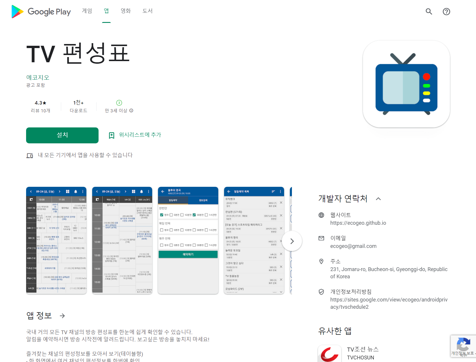 TV 편성표 - Google Play 앱