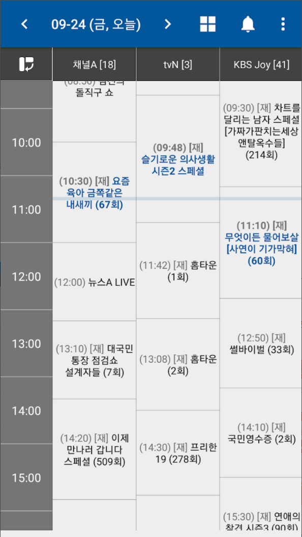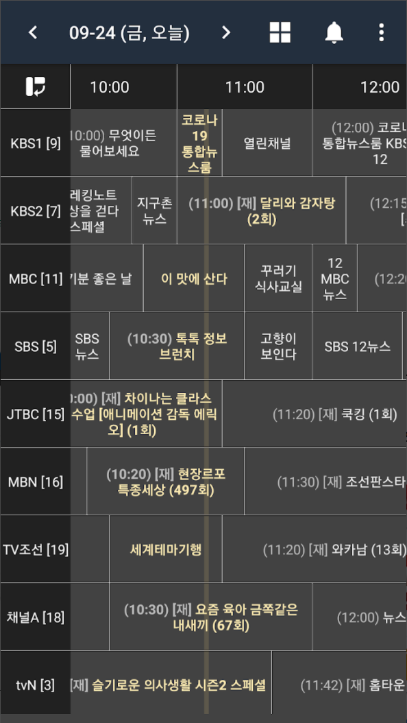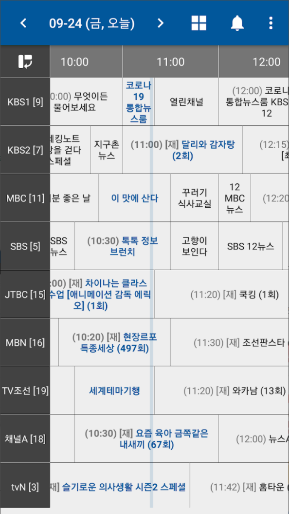 - 한 화면에서 여러 채널의 편성정보를 한번에 확인