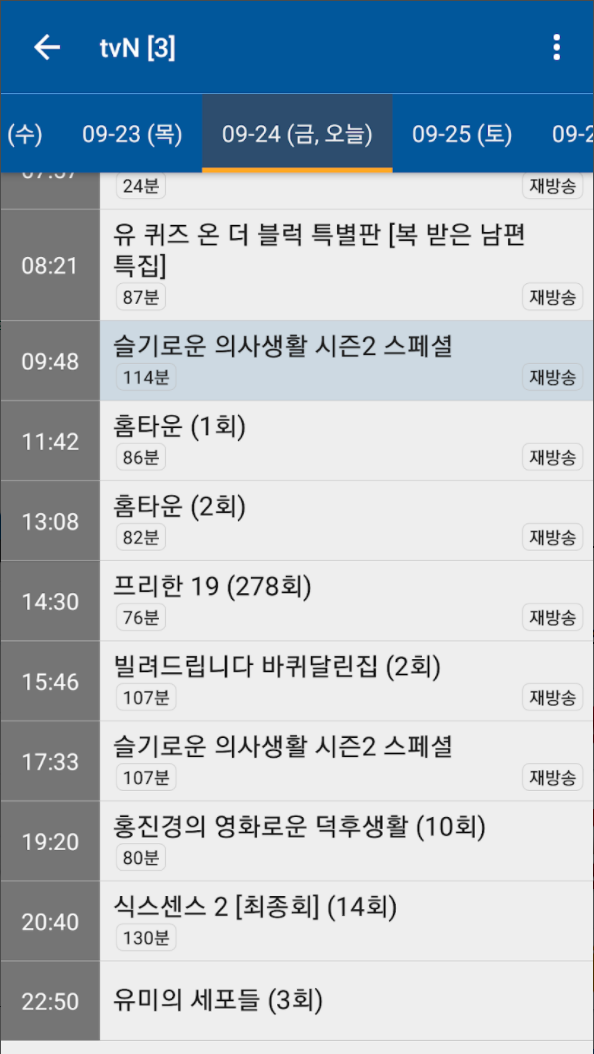 - 선택한 채널의 편성정보를 목록형태로 표시