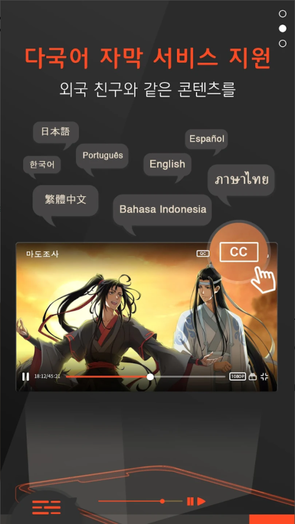 자막: 다양한 언어와 자막을 제공합니다. 취향에 따라 언어를 바꿀 수 있습니다.