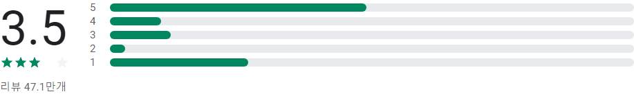 앱 평점 및 별표 1, 2, 3, 4, 5개 리뷰의 개수에 따라 표시되는 막대그래프는 앱의 평가 횟수가 매우 적은 경우가 아니라면 사용자 리뷰의 전체 기간 평균값이 아닌 앱의 현재 품질 평점을 바탕으로 합니다.