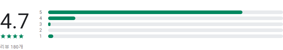 앱 평점 및 별표 1, 2, 3, 4, 5개 리뷰의 개수에 따라 표시되는 막대그래프는 앱의 평가 횟수가 매우 적은 경우가 아니라면 사용자 리뷰의 전체 기간 평균값이 아닌 앱의 현재 품질 평점을 바탕으로 합니다.
