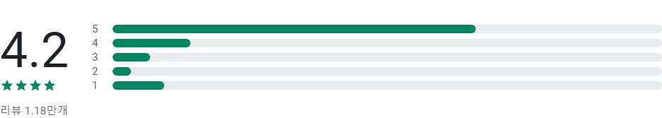 앱 평점 및 별표 1, 2, 3, 4, 5개 리뷰의 개수에 따라 표시되는 막대그래프는 앱의 평가 횟수가 매우 적은 경우가 아니라면 사용자 리뷰의 전체 기간 평균값이 아닌 앱의 현재 품질 평점을 바탕으로 합니다.