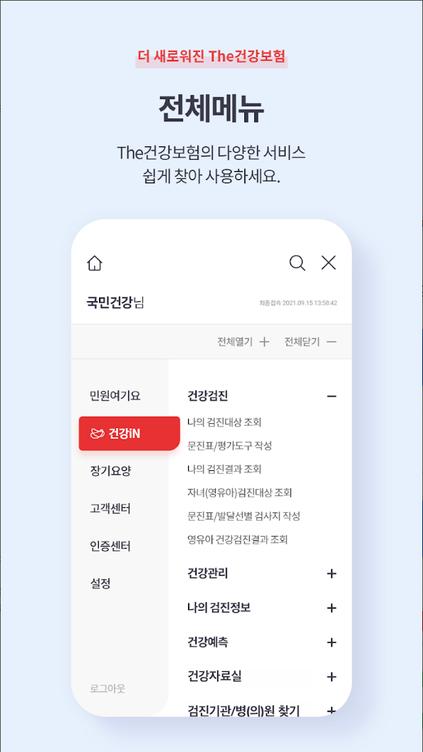 건강 보험 관리 공단에서 모바일로 편리하게 특히 건강 보험료 지역 가입자 그리고 영유아 건강 검진 등의 정보를 쉽고 편리하게 민원서비스를 이용할 수 있는 The건강보험 어플입니다.