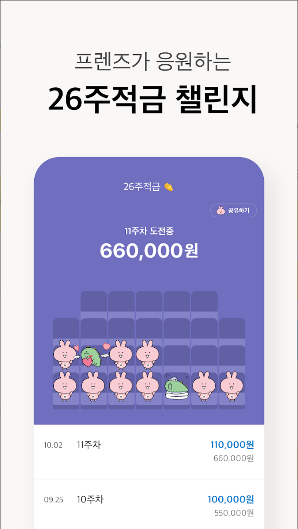 • 천 원부터 차곡차곡 26주 동안 매주 쌓는 적금