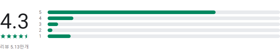 앱 평점 및 별표 1, 2, 3, 4, 5개 리뷰의 개수에 따라 표시되는 막대그래프는 앱의 평가 횟수가 매우 적은 경우가 아니라면 사용자 리뷰의 전체 기간 평균값이 아닌 앱의 현재 품질 평점을 바탕으로 합니다.
