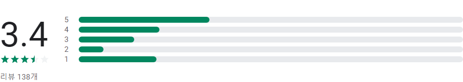 앱 평점 및 별표 1, 2, 3, 4, 5개 리뷰의 개수에 따라 표시되는 막대그래프는 앱의 평가 횟수가 매우 적은 경우가 아니라면 사용자 리뷰의 전체 기간 평균값이 아닌 앱의 현재 품질 평점을 바탕으로 합니다.