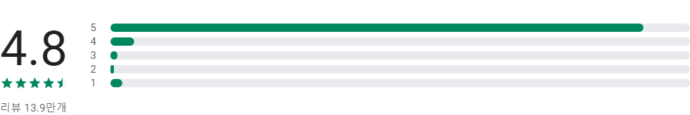 앱 평점 및 별표 1, 2, 3, 4, 5개 리뷰의 개수에 따라 표시되는 막대그래프는 앱의 평가 횟수가 매우 적은 경우가 아니라면 사용자 리뷰의 전체 기간 평균값이 아닌 앱의 현재 품질 평점을 바탕으로 합니다.