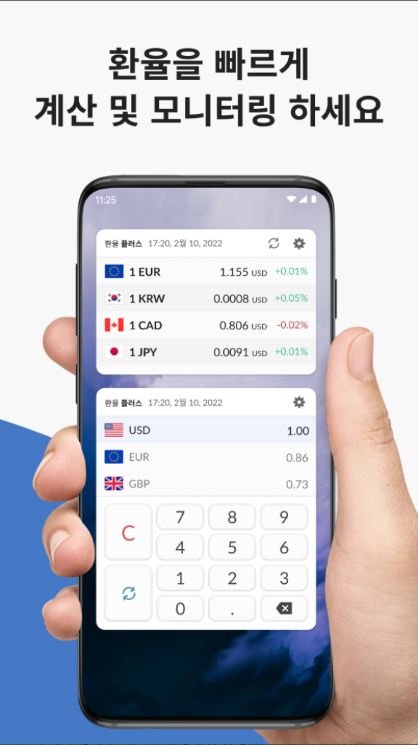 환율을 빠르게 계산 및 모니터링 하세요.