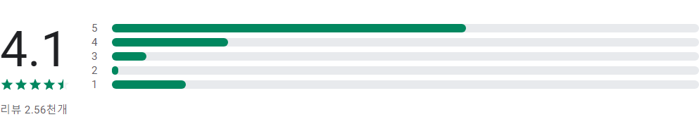 앱 평점 및 별표 1, 2, 3, 4, 5개 리뷰의 개수에 따라 표시되는 막대그래프는 앱의 평가 횟수가 매우 적은 경우가 아니라면 사용자 리뷰의 전체 기간 평균값이 아닌 앱의 현재 품질 평점을 바탕으로 합니다.