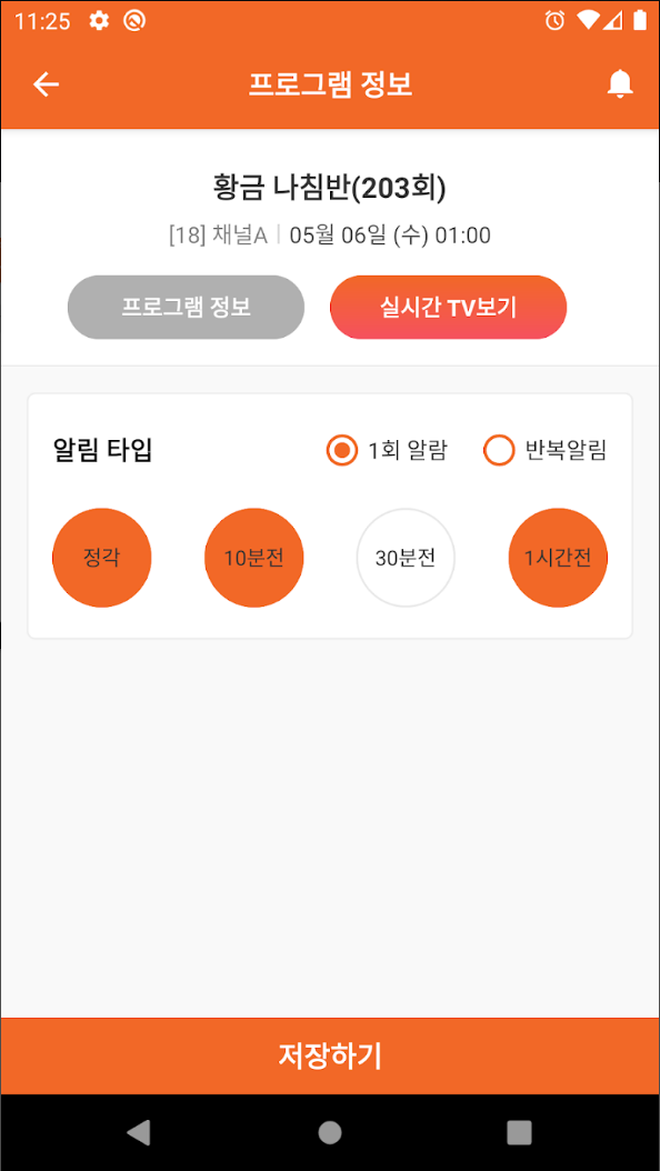 프로그램 정보, 알림 타입, 1회 알람, 반복 알림