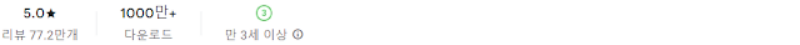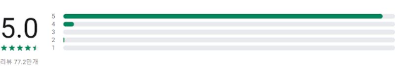 또, 리뷰 점수가 5.0점 만점인 경우는 드문데도, 1,000만 이상 다운로드에 77.2만개의 리뷰라니 놀라운 별점이며, 상당히 유용하게 활용이 가능할 것 같습니다.