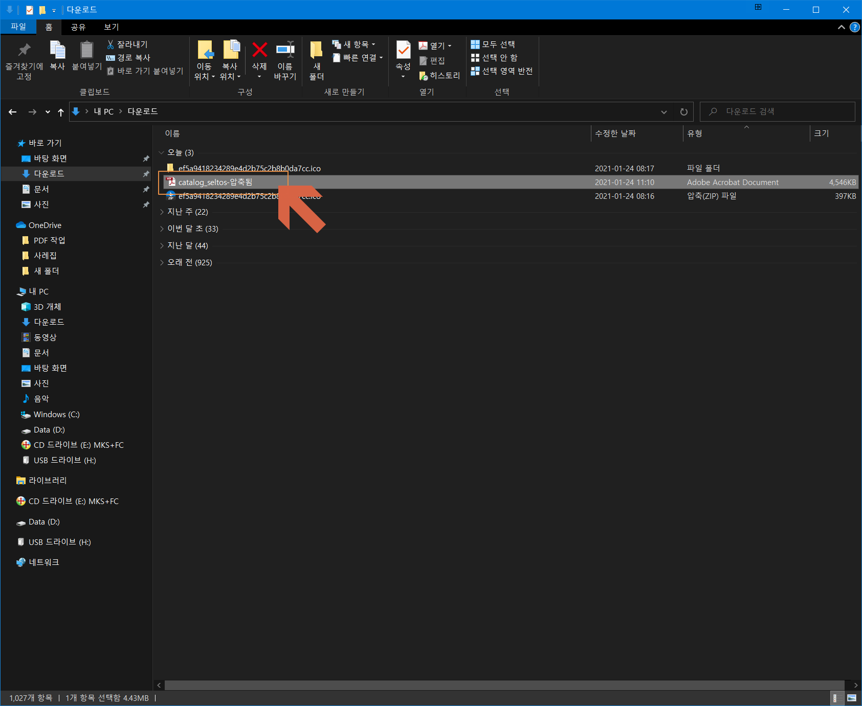 압축된 PDF 파일이 다운로드가 되었습니다. 다운로드 폴더로 이동해 봅니다.