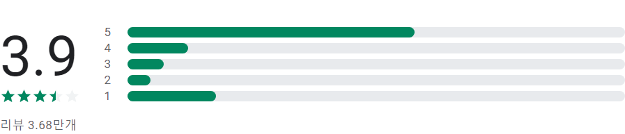 앱 평점 및 별표 1, 2, 3, 4, 5개 리뷰의 개수에 따라 표시되는 막대그래프는 앱의 평가 횟수가 매우 적은 경우가 아니라면 사용자 리뷰의 전체 기간 평균값이 아닌 앱의 현재 품질 평점을 바탕으로 합니다.