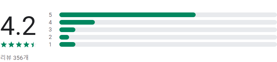 앱 평점 및 별표 1, 2, 3, 4, 5개 리뷰의 개수에 따라 표시되는 막대그래프는 앱의 평가 횟수가 매우 적은 경우가 아니라면 사용자 리뷰의 전체 기간 평균값이 아닌 앱의 현재 품질 평점을 바탕으로 합니다.