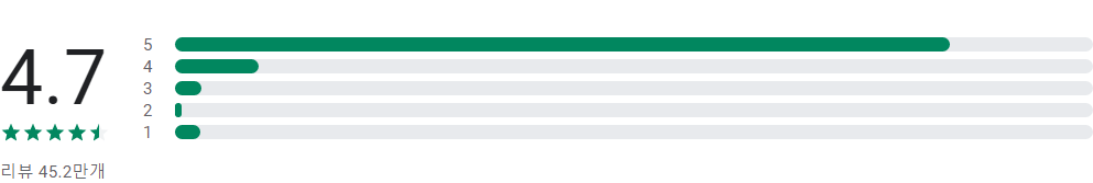 앱 평점 및 별표 1, 2, 3, 4, 5개 리뷰의 개수에 따라 표시되는 막대그래프는 앱의 평가 횟수가 매우 적은 경우가 아니라면 사용자 리뷰의 전체 기간 평균값이 아닌 앱의 현재 품질 평점을 바탕으로 합니다.
