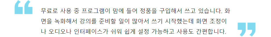 다양한 녹화 옵션을 제공하는 반디캠은 컴퓨터 화면의 특정 영역이나 전체 화면 녹화를 가능하게 하며, 컴퓨터 사운드와 마이크 입력을 동시에 녹화할 수 있어 강의나 튜토리얼 제작에 유용합니다. 또한, 녹화 중 실시간으로 화면 위에 텍스트, 화살표, 도형을 추가할 수 있는 편집 기능을 제공하여 동영상에 직접적인 설명을 추가하는 데 매우 편리합니다.