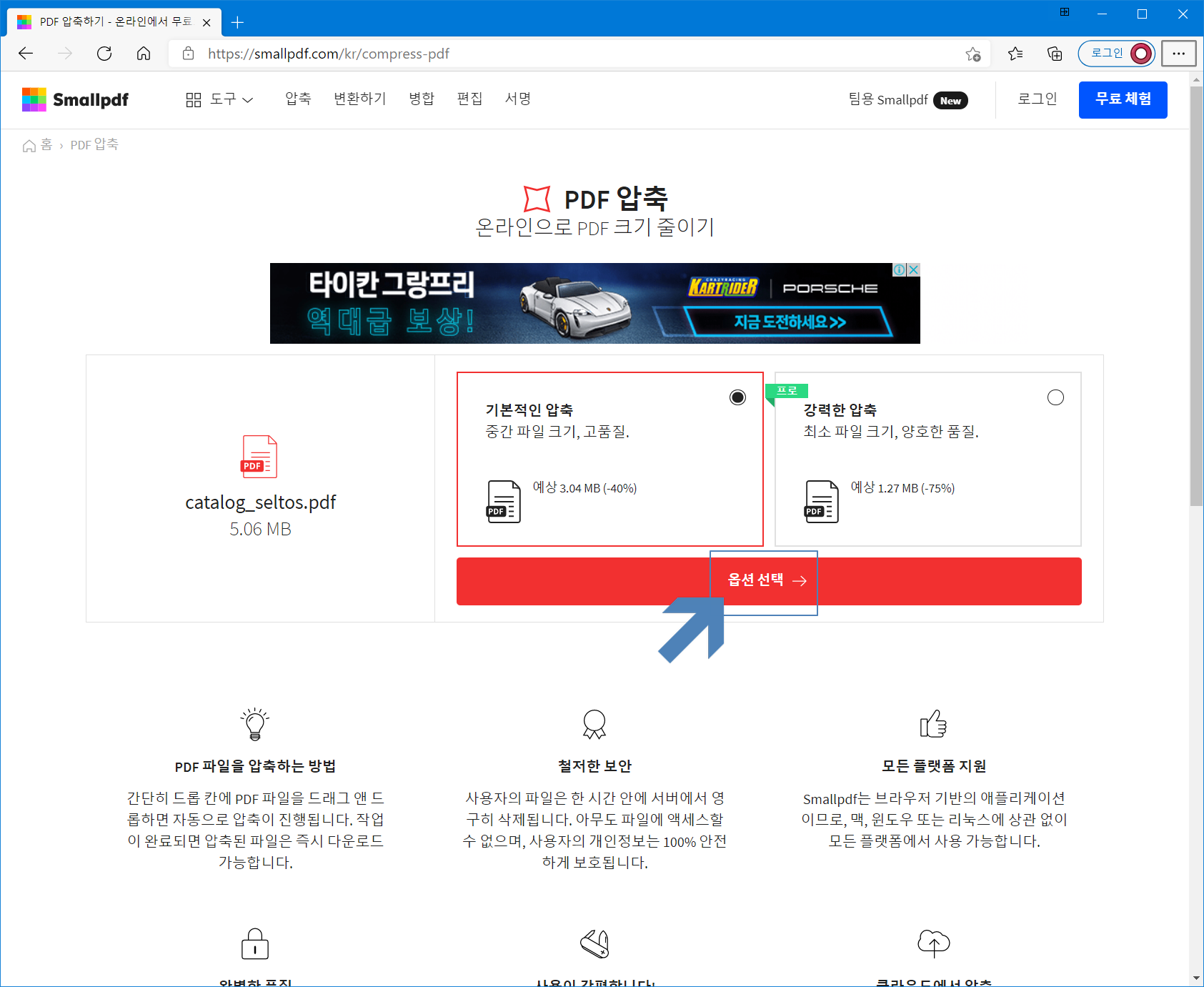 단지, 압축시의 몇가지 옵션을 더 제시하여 최대화할 수 있는 옵션이 유료라는것이 조금은 걸리긴하지만 이정도의 기능 활용에서는 안정된 모습을 보여주기도하고 나름 의미있는 스몰PDF 웹 툴을 활용하는것도 좋을듯 합니다.