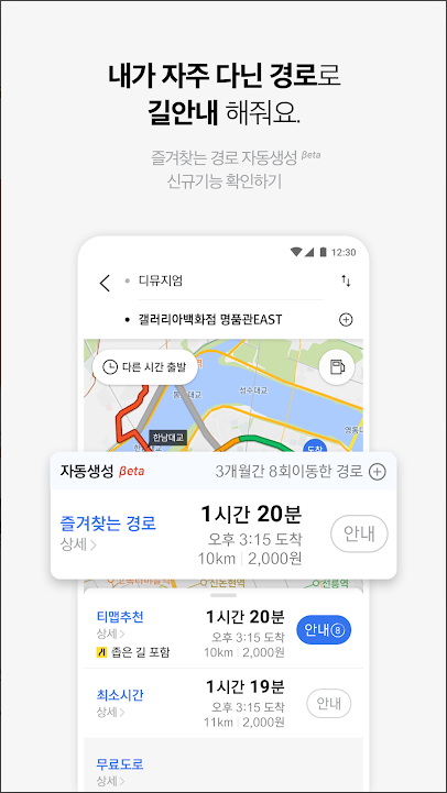 - 자주 가는 경로를 저장하고 안내받으세요. 자동으로 생성 및 추천도 해줍니다.