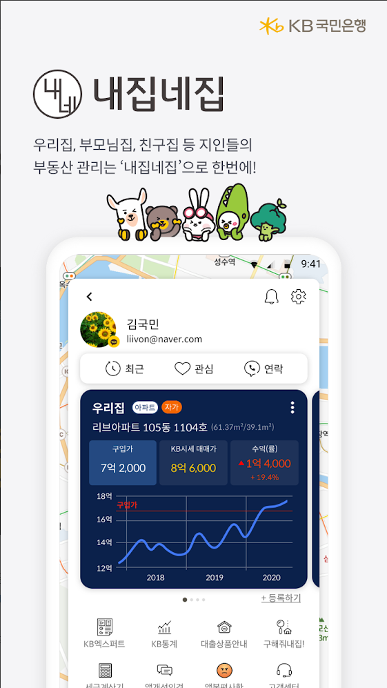- 매주 🔔알림으로 KB시세변동에 따른 🔺수익률을 보여줍니다. 주식처럼 간편하게 우리집 수익률을 확인하세요!