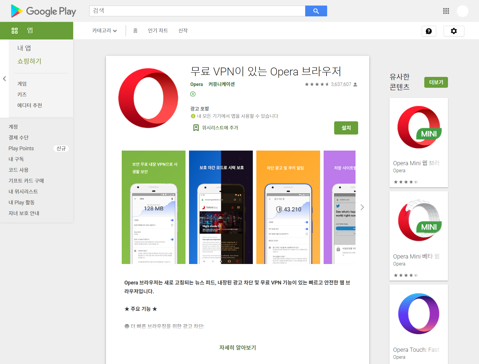 무료 VPN이 있는 Opera 브라우저 - Google Play 앱
