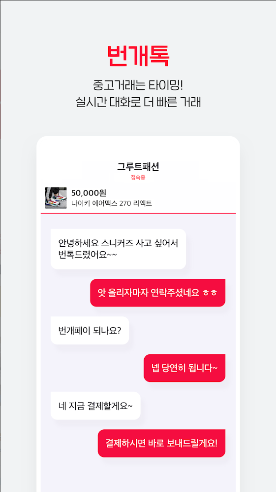 • 개인간 거래에 최적화된 번개장터 앱 전용 채팅 서비스