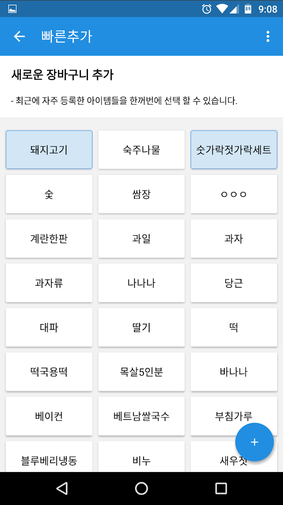 - 앱을 사용하면서 자주 등록한 물품들은 한번에 편하게 선택 할 수 있습니다.