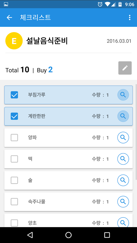 2) 구매예정 물품 '체크리스트(장바구니)' 작성