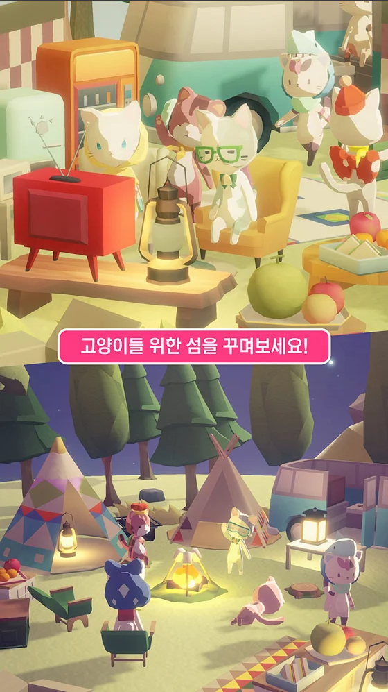 >매 시즌마다 업데이트되는 데코들로 고양이들을 위한 아기자기한 섬을 꾸며보세요