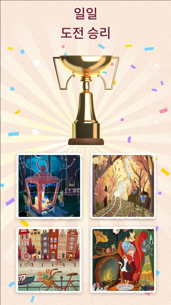 아름답고 창의적인 동화풍의 미술 작품들을 배경으로 퍼즐을 풀며 힐링하는 기분을 느낄 수 있습니다.