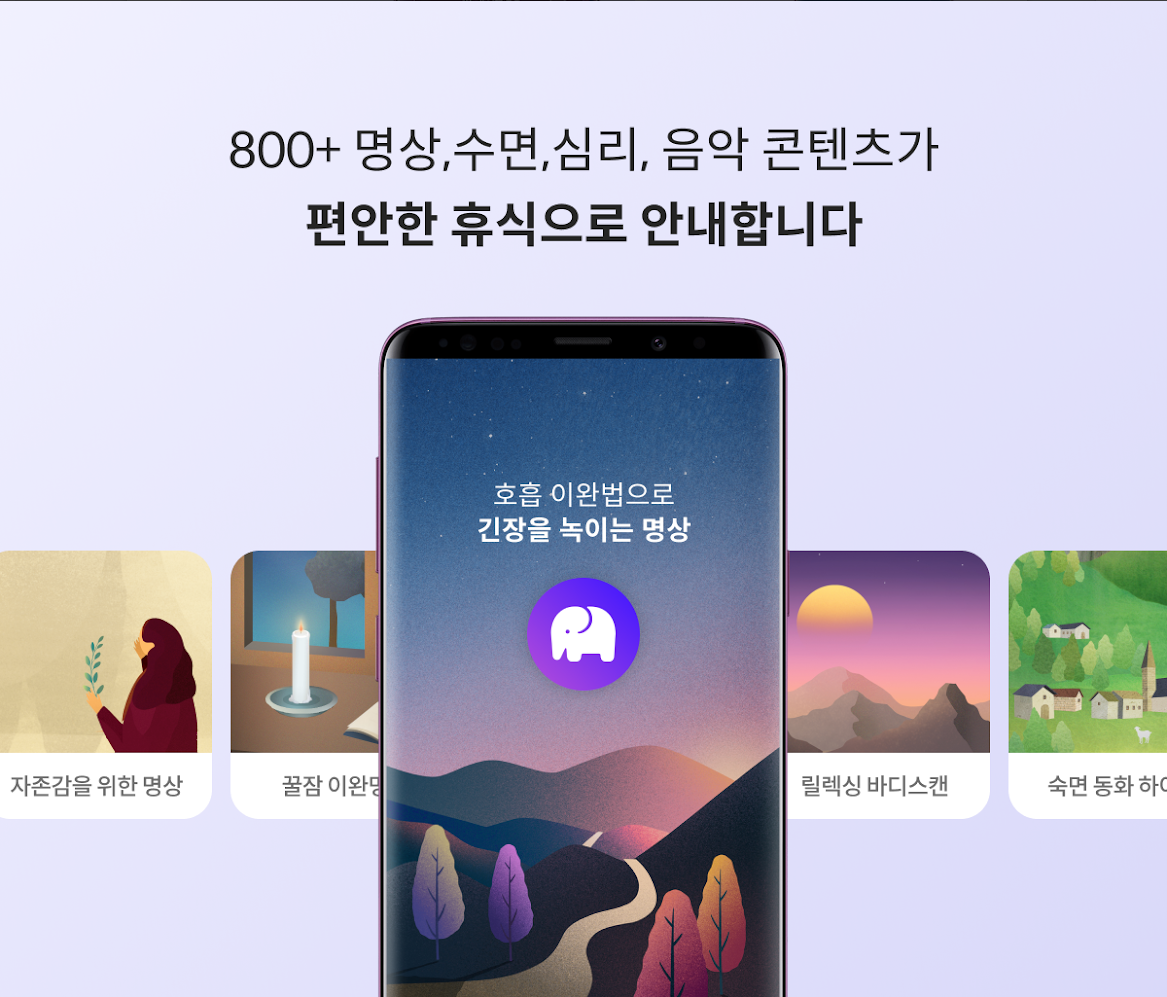 • 코끼리에서 당신의 필요와 상황에 맞는 명상을 골라 하나씩 따라해 보세요.