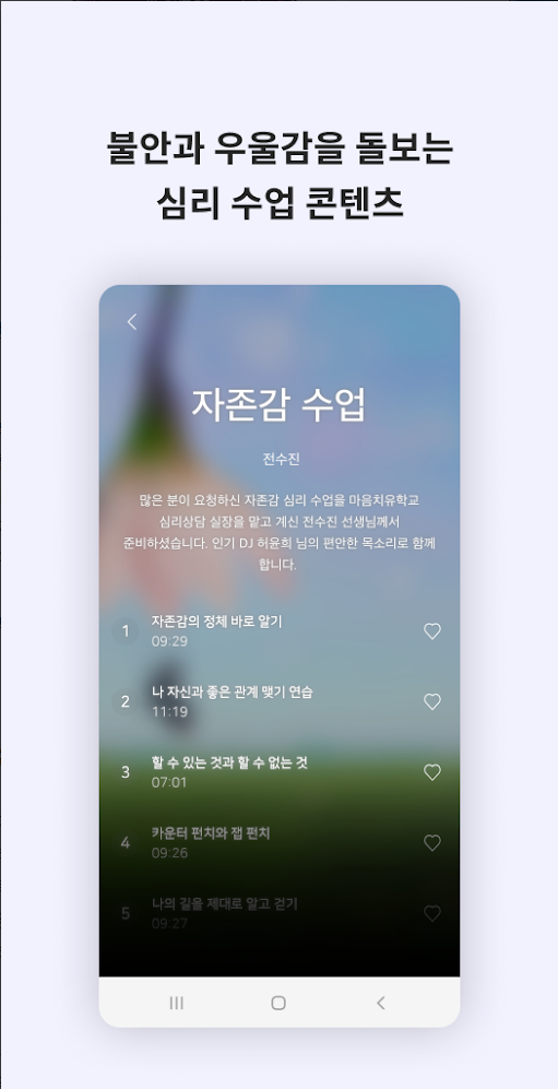 불안과 우울감을 돌보는 심리 수업 콘텐츠, 다양한 아티스트의 ASMR, 자연소리, 명상음악