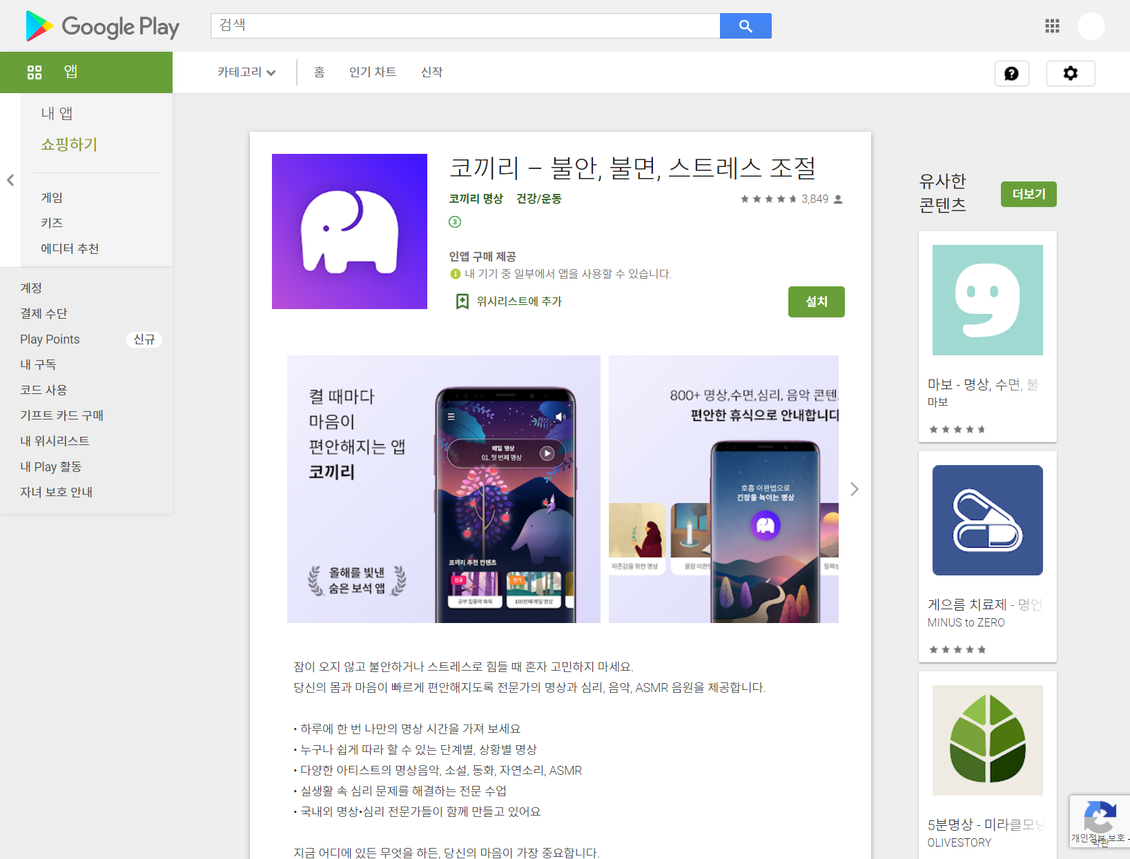 코끼리 – 불안, 불면, 스트레스 조절 - Google Play 앱