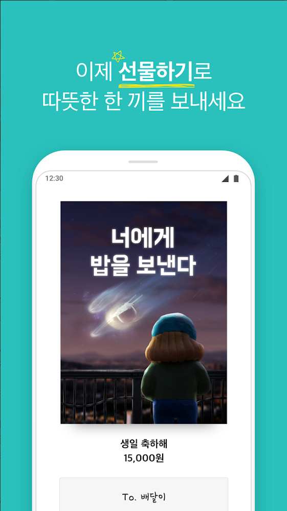 배달의민족은 선물하기로 따뜻한 한 끼를 보낼 수 있습니다.
