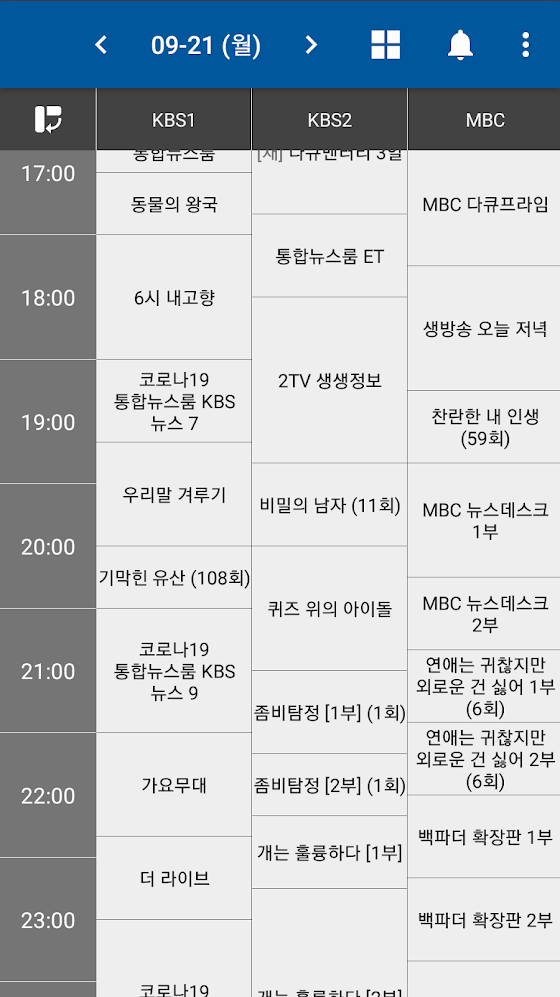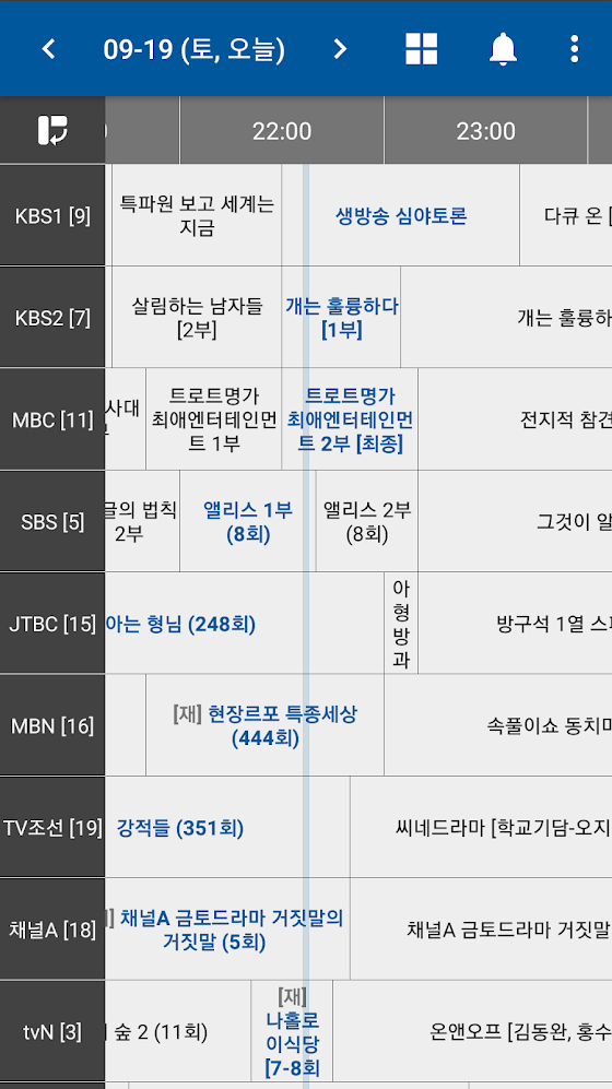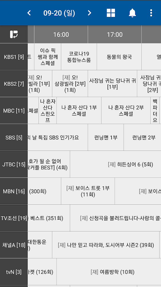 - 한 화면에서 여러 채널의 편성정보를 한번에 확인