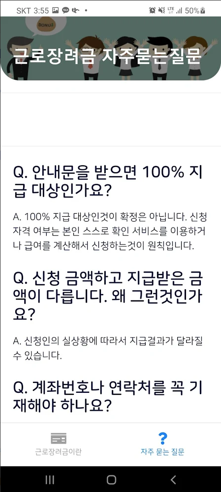 국세청에서 지급하는 근로장려금에 대한 가이드 어플리케이션입니다.
