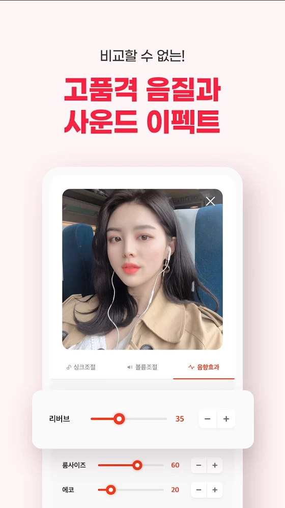 - 음정, 싱크, 목소리 볼륨, 반주 볼륨, 리버브, 룸사이즈, 에코까지 노래 사운드의 모든 것을 내 마음대로 조절