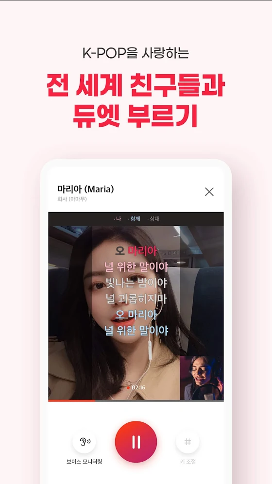 고품질 음질과 사운드 이펙트, 전 세계 친구들과 듀엣 부르기.