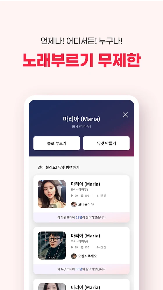 고품질 음질과 사운드 이펙트, 전 세계 친구들과 듀엣 부르기.