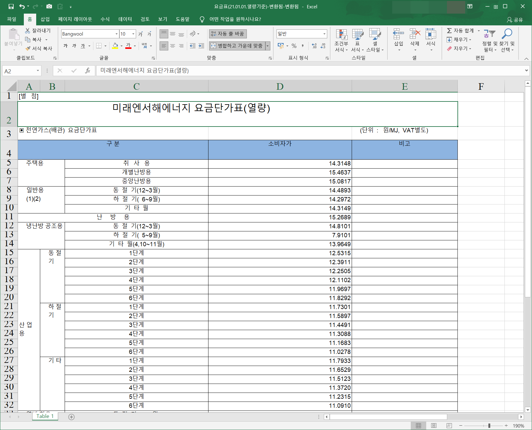 엑셀 파일로 변환된 파일을 열어보았습니다.